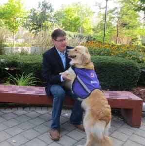Since June 2013, Andrew has been the handler of NSD Flicka. She is a certified service dog that was bred and trained by National Service Dogs (NSD), a registered Canadian charitable organization that is accredited by Assistance Dogs International (ADI).
